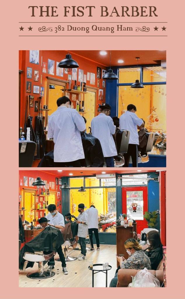 Đến với tiệm cắt tóc nam đẹp chất này, bạn sẽ được thợ làm tóc chuyên nghiệp tư vấn về các kiểu tóc xu hướng mới nhất, sao cho phù hợp với gương mặt. Từ kiểu Quiff, Man Bun hay quyến rũ với kiểu Undercut, angular fringe đều dễ dàng có được tại The Fist Barbershop. Giá cắt tóc nam tại đây khá phải chăng, từ 60k/lần. Phục vụ nhanh chóng, sức chứa rộng, đậu xe thoải mái và cũng là địa điểm cắt tóc uy tín được nhiều bạn nam lựa chọn.
