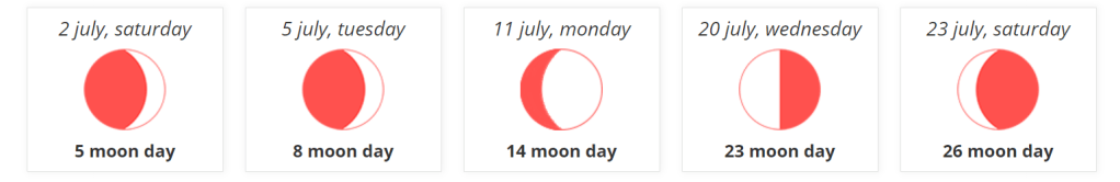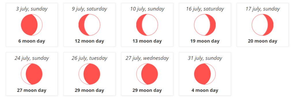 Những ngày tốt nhất để cắt tóc vào tháng 7 – là khi ngày mặt trăng và vị trí mặt trăng trong dấu hiệu Zodiak theo quan điểm của các nhà chiêm tinh học là không thuận lợi cùng một lúc. Ngoài ra, ngày trong tuần không nên là chủ nhật.