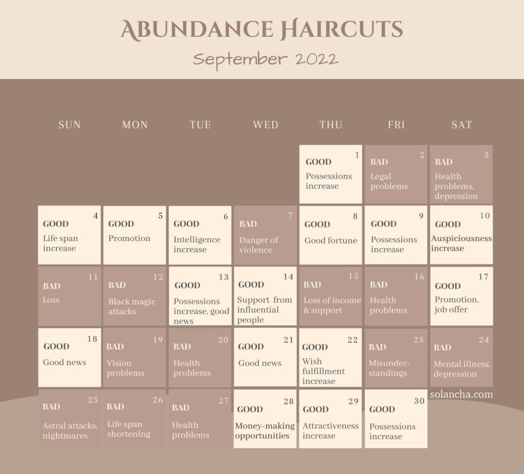 Từ lâu, người ta đã biết rằng sở hữu những ngày đặc thù tiện lợi để cắt tóc. Trong số các ngày này, mang những ngày “Cắt tóc phong phú.” hay “dồi dào”