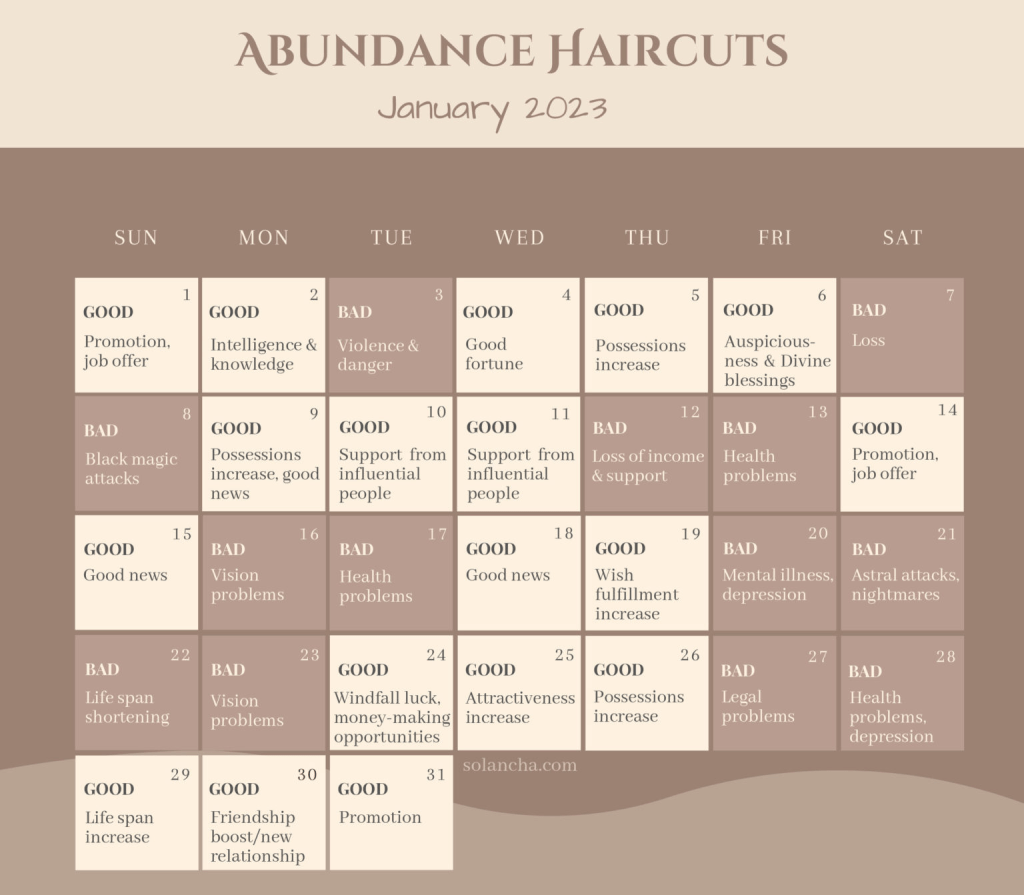 Ngày tốt cắt tóc tháng 1/2023 theo hệ tâm linh