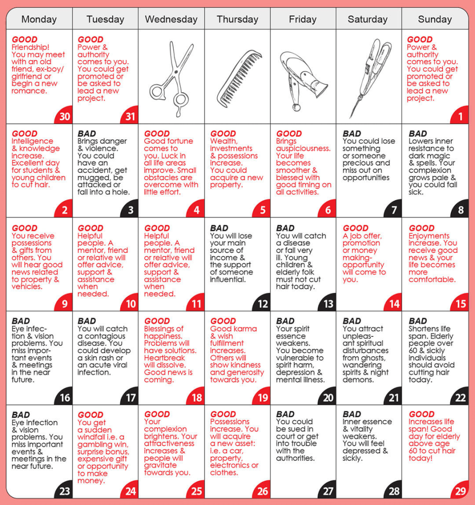 Hướng dẫn chọn ngày cắt tóc đẹp trong tháng một năm 2023