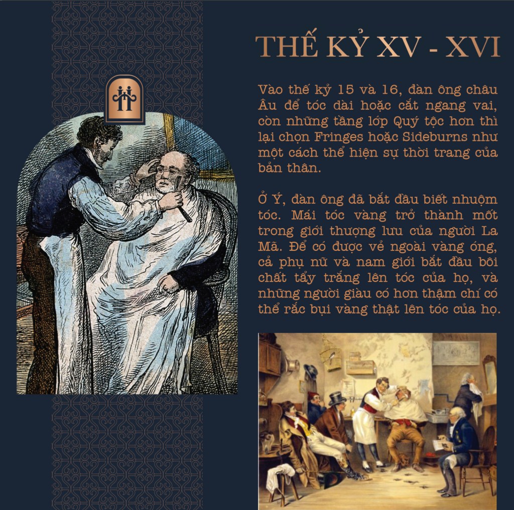 Vào thế kỷ 15 và 16, đàn ông châu âu để tóc dài hoặc cắt ngang vai, còn những tầng lớp Quý tộc hơn thì lại sắm 𝐅𝐫𝐢𝐧𝐠𝐞𝐬 hoặc 𝐒𝐢𝐝𝐞𝐛𝐮𝐫𝐧𝐬 như một cách biểu hiện sự thời trang của bản thân.