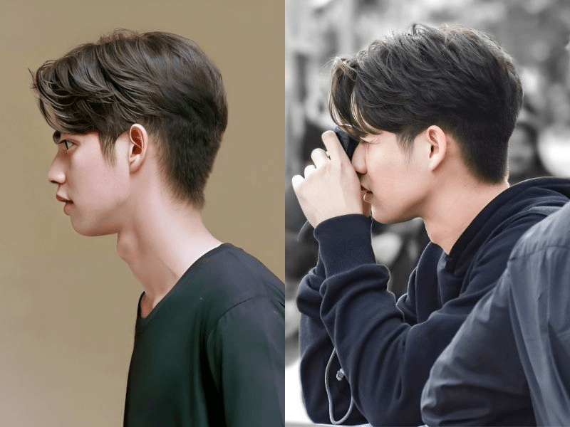 Phù hợp với khuôn mặt dài hoặc tròn, kiểu tóc two block side part với mái rẽ ngôi 7/3 hoặc 6/4 giúp tạo điểm nhấn cho khuôn mặt, đồng thời che khuyết điểm hiệu quả.