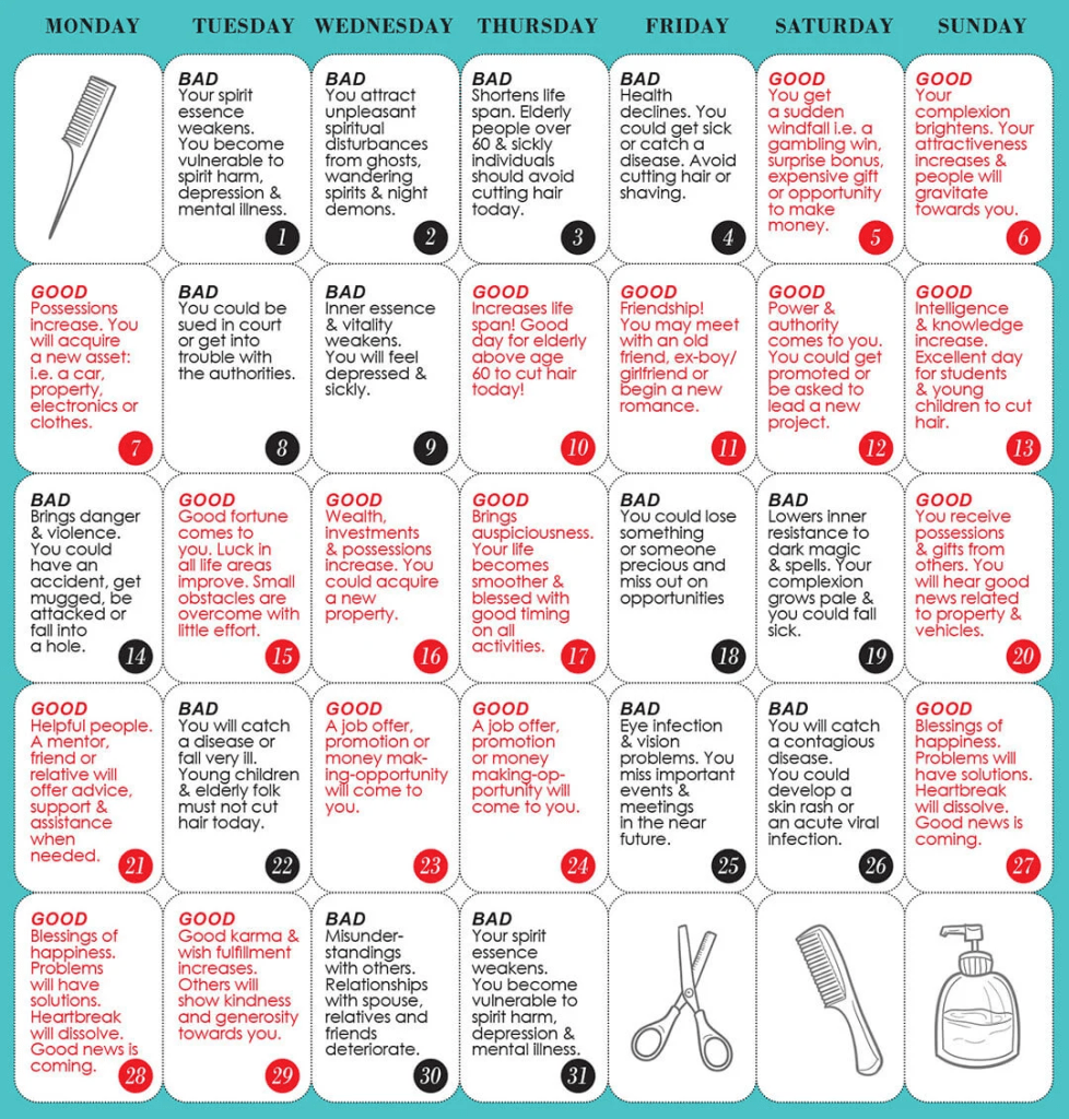 • Ngày 18: Cắt tóc vào ngày này có thể gây mất mát về tiền bạc và tài sản.