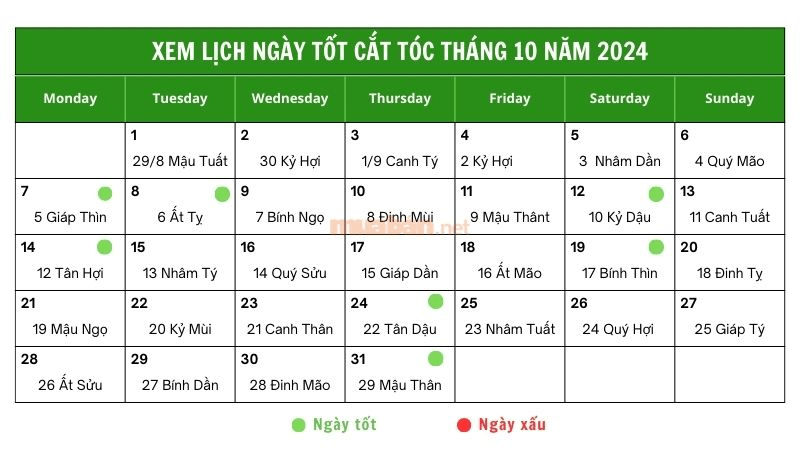 chọn ngày tốt cắt tóc trong lịch cắt tóc tháng 10.2024