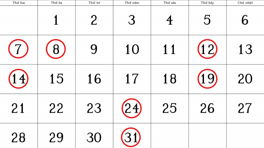 • Ngày 19, 26, 29: Được xem là những ngày cực kỳ may mắn, phù hợp để đón nhận vận may.