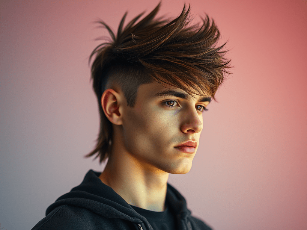 Một kiểu tóc sói có cấu trúc và có chủ đích hơn dành cho nam giới; giữ hai bên tóc sạch sẽ để làm nổi bật phần tóc cháy xém đó.