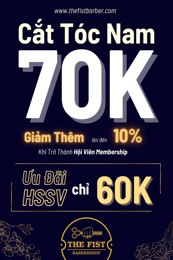 - Giá cắt tóc nam năm 2025 là 70K – Ưu đãi Học Sinh Sinh Viên (HSSV) chỉ 60K